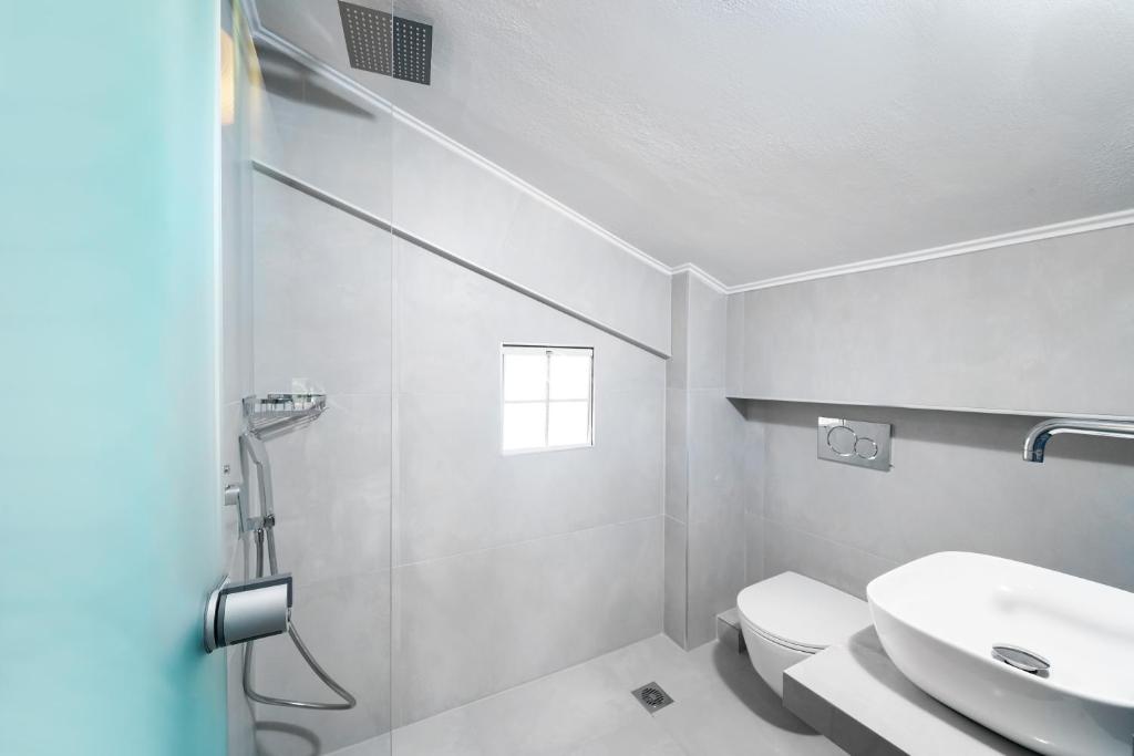 A zuhanyzós fürdőszoba gyönyörű és szinvonalas.
