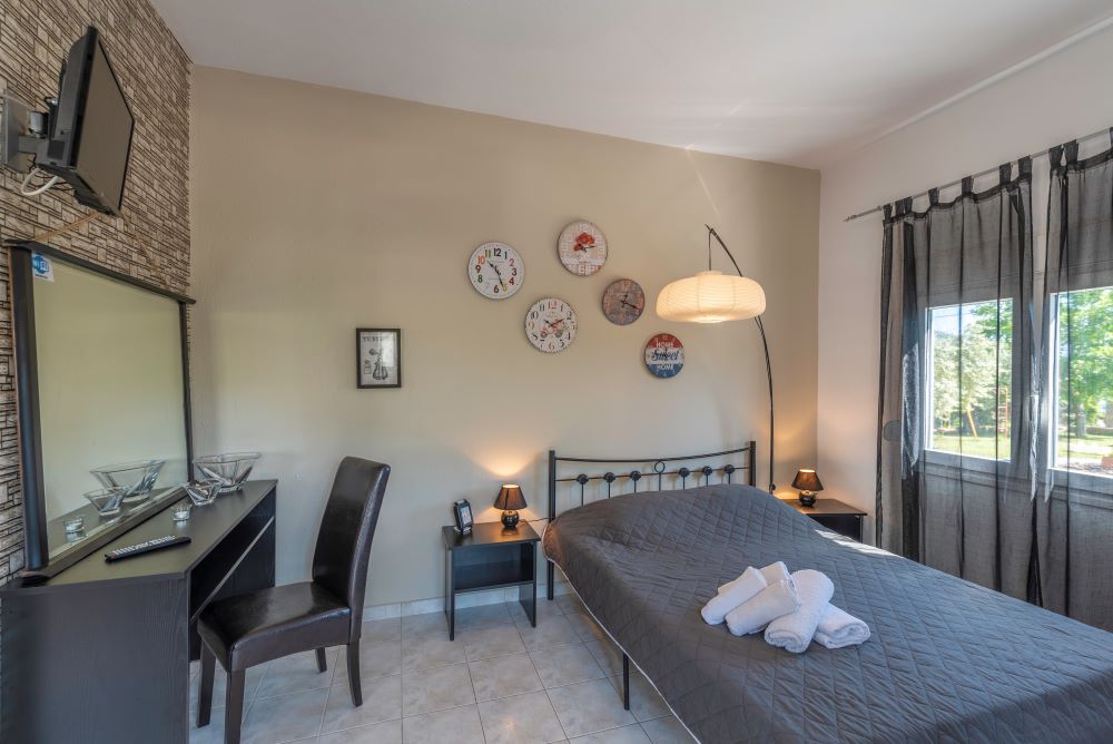 A Kastrinou Studios 6 db 4/ágyas stúdiót kínál (25 m2), ebből 3 a magasitott földszinten és 3 az első emeleten található. A studiók 2 felnőtt + 2 gyermek kényelmes elhelyezésére szolgálnak.