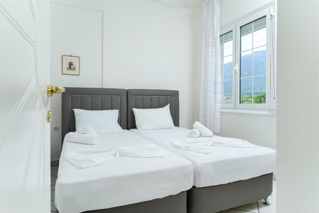A kényelmes alvást minőségi ágy biztositja. A studiokat teakonyha és modern fürdőszoba egészitik ki, ugyanakkor minden studióhoz saját erkély is tartozik kilátással a szépen gondozott kertre.