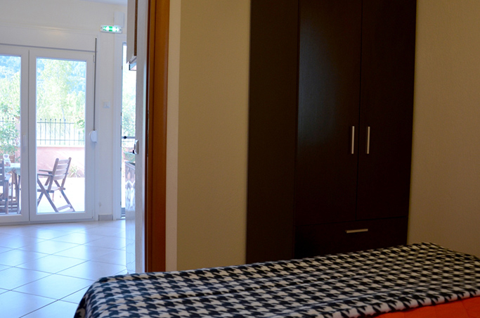 Két hálószobás apartmanlakás ahol a szobák egymásból nyilnak. 4-5 fő kényelmes elhelyezésére. A konyhában nagy méretű hűtőszekrénnyel. A terasz tágas és árnyékos.